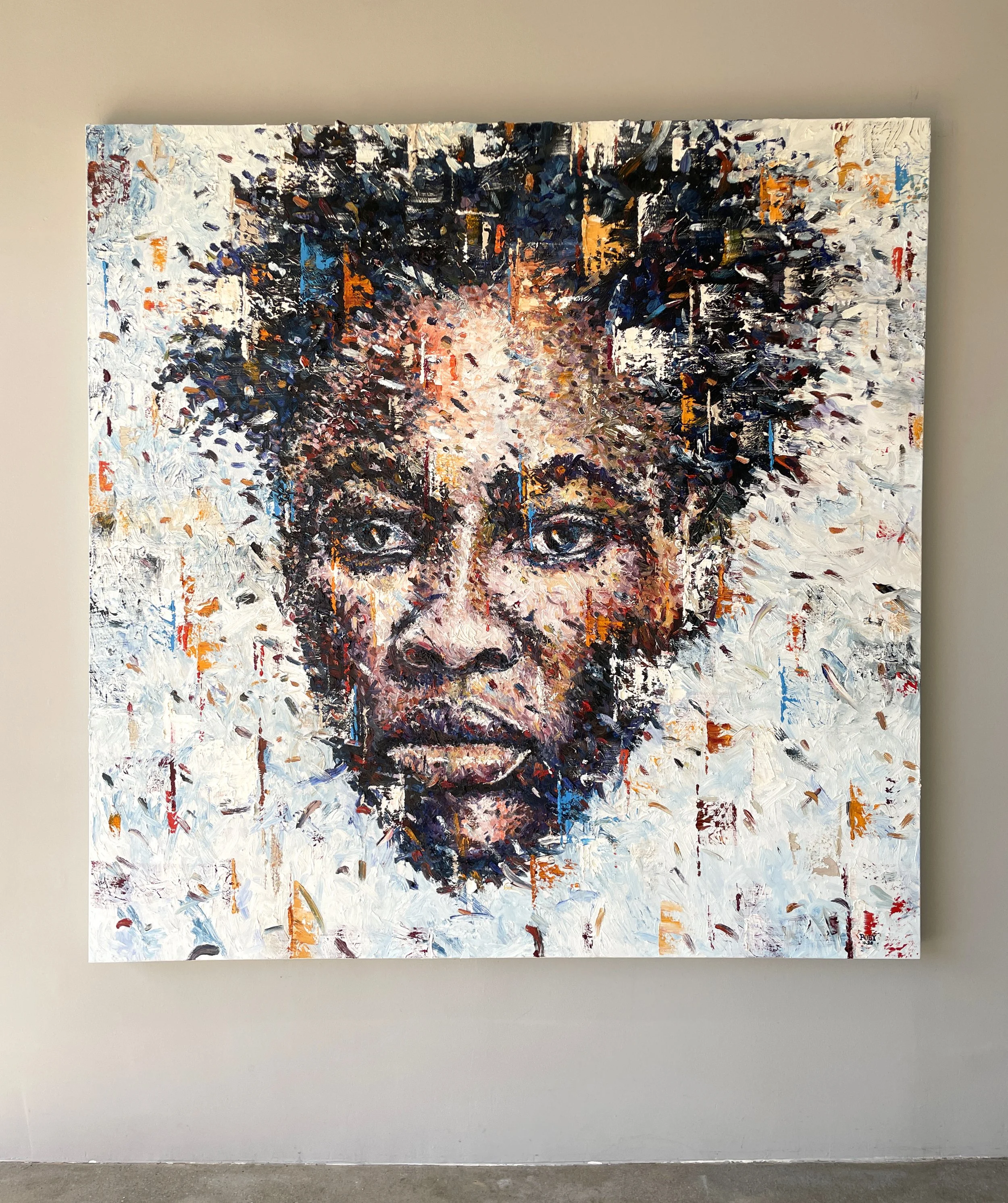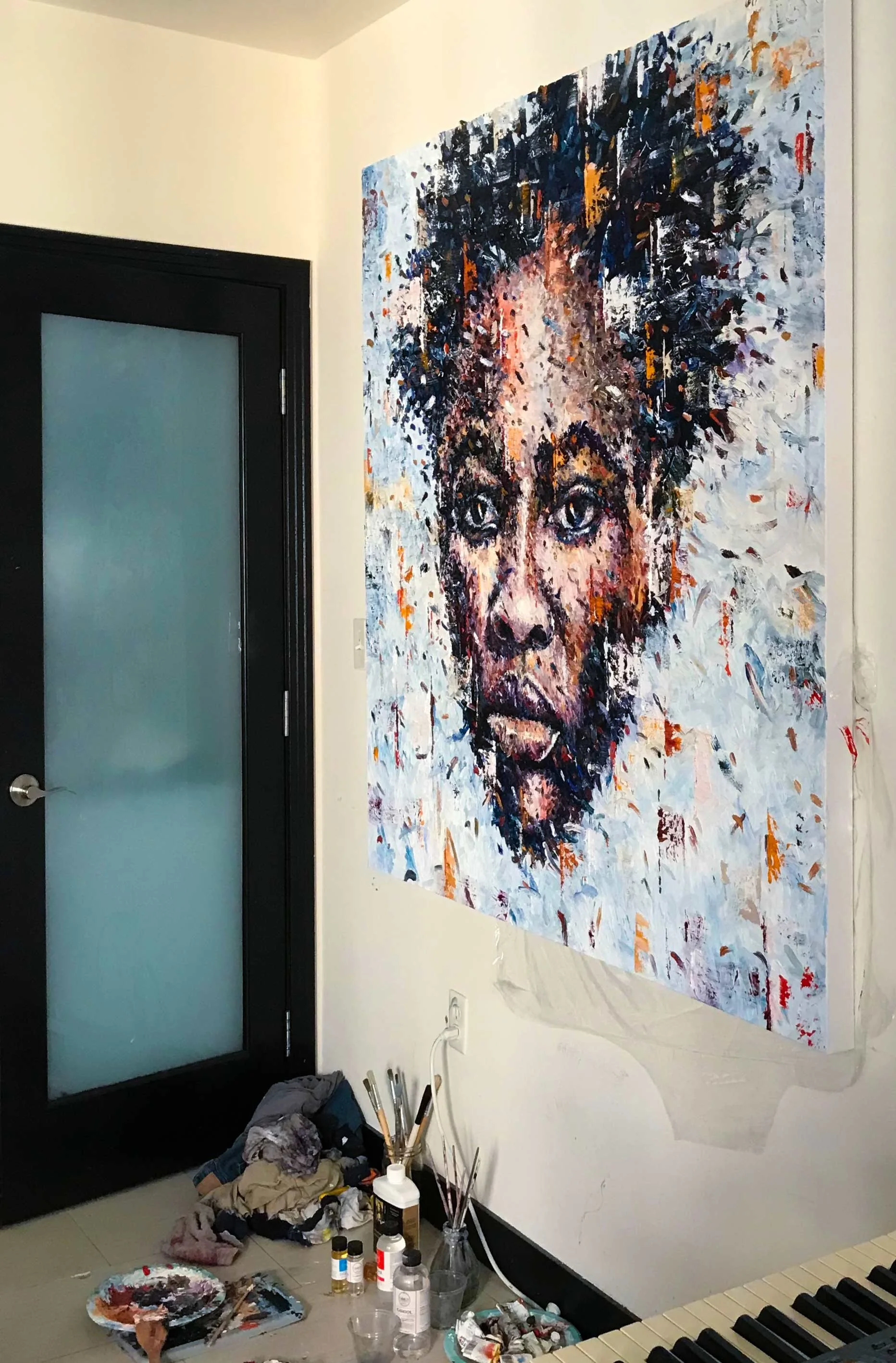 Ashleigh Johnson is the world best female waterpolo goalkeeper, a five time World Champion and two times Olympic Gold medalist. In 2016 she became the first African-American woman to make a U.S. Olympic Women’s Water Polo Team. She is also a Princeton graduate. After I photographed the 2020 US Waterpolo Olympic campaign, I it was clear to me that I needed to paint this extraordinary woman. Not a normal portrait in oil. I wanted to go deeper and show the HIDDEN SCARS that come with the hard and persistent work to become the world’s best. The 60x60 inch painting has multiple layers of thick, large oil paint brushes and unfolds a three dimensional feel best in very low light. The strength, power and beauty of Ashleigh’s soul is what I wanted to show with this painting. See what she says about it below.